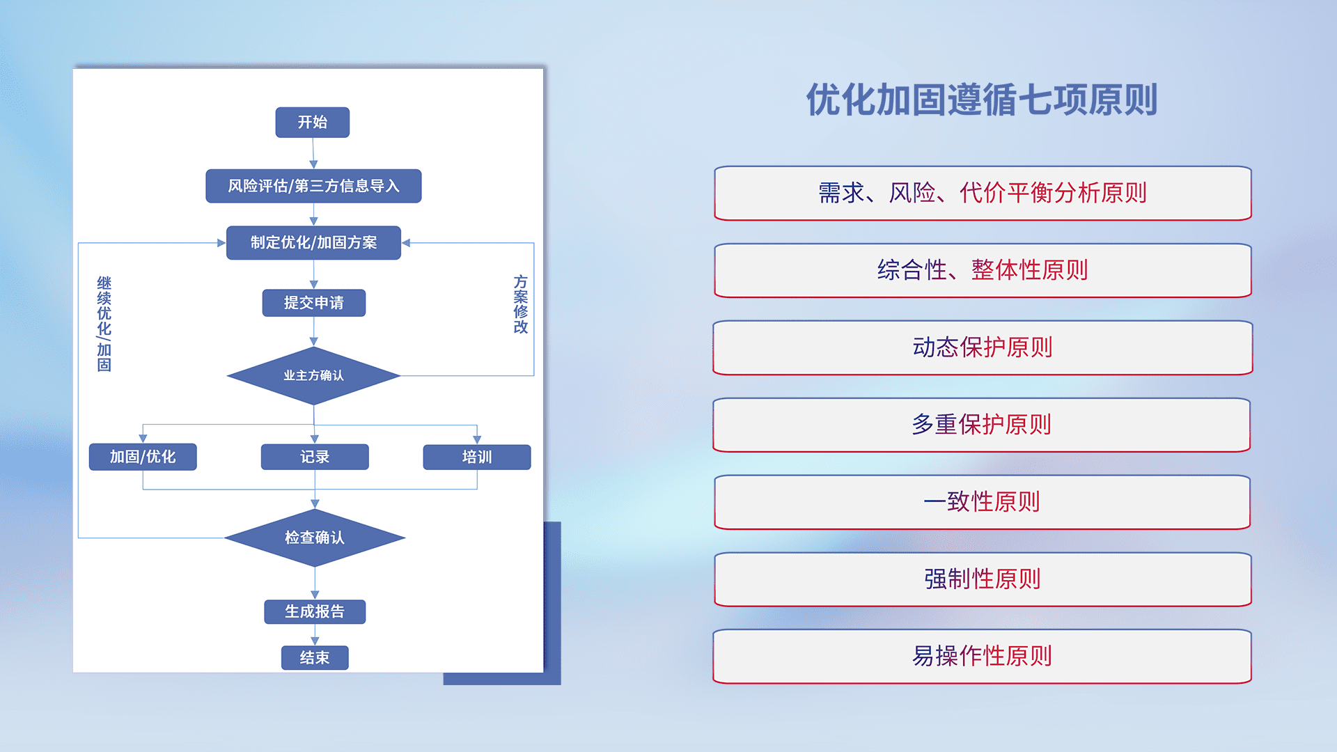 最大程度利用现有资产,,,,对评估发现的问题进行封堵与整改,,,,防止漏洞被利用,,,,提升整体网络安全性,,为客户带来高标准的优化加固服务。。。