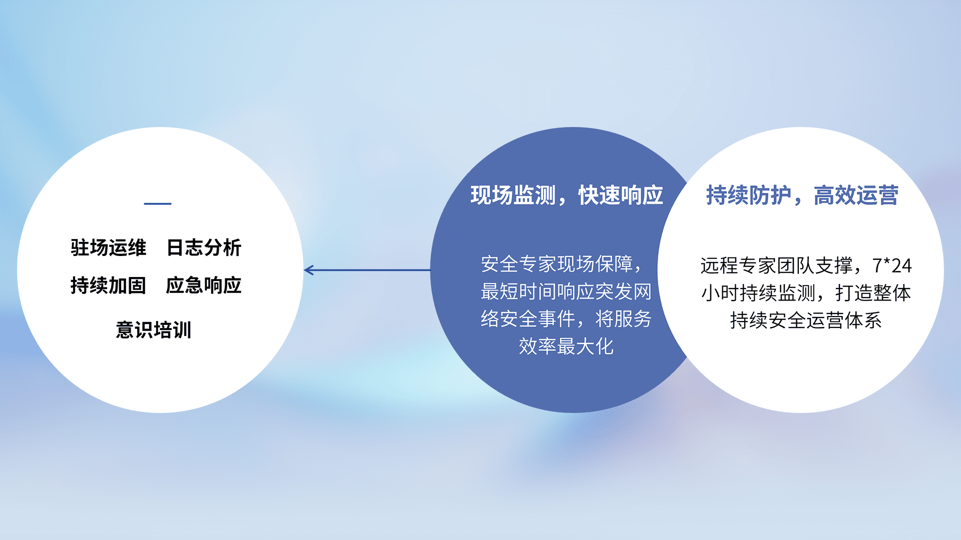 7X24小时持续监测安全事件,保持安全策略有效性,降低资产脆弱性风险,,,精准拦截黑客攻击,,减少被黑客利用的机会,,第一时间遏制,,降低损失。。。